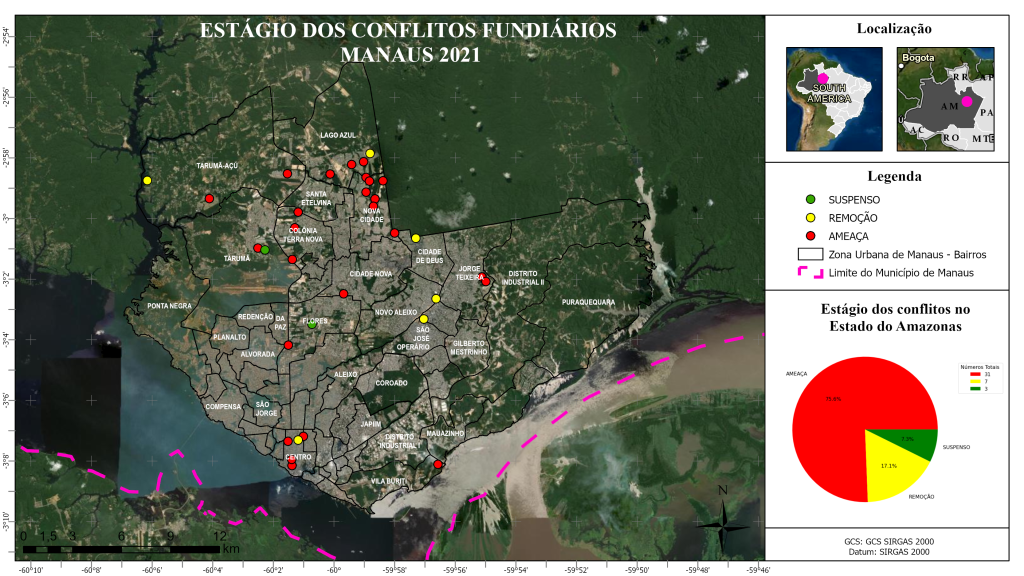 No dia 28 de outubro, último dia da Missão-Denúncia em Manaus começou com uma mesa de negociação organizada em parceria com a Defensoria Pública do Estado do Amazonas. Além da comitiva da Missão, participaram representantes do judiciário e do poder executivo de Manaus. A reunião teve como foco a apresentação do diagnóstico coletado em campo nas ocupações e das denúncias de violações de direitos humanos averiguadas ao longo dos dois primeiros dias. A comitiva apresentou os dados coletados ao longo de 2020 e 2021 pela Campanha Nacional Despejo Zero, que apontam que o Amazonas foi o 3º estado que mais despejou famílias durante a pandemia – foram mais de 3.000 famílias despejadas entre março de 2020 e agosto de 2021. Além disso, o Amazonas é o 2º lugar em número de famílias ameaçadas de despejo. São pelo menos 19.173 famílias – quase 100 mil pessoas!